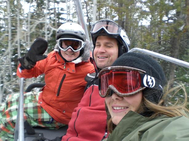 I was stoked to ride the new chairlift and to get on snow finally at Steamboat. The best part about living in a ski town…is you’ll always see people you know on the mountain. My first chairlift ride of the day I rode up with one of my roommates friends and by the time I made it to Thunderhead Chairlift…I met up with my co-worker and his wife! Ahh…so great making turns with people you know and work with 🙂
