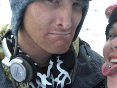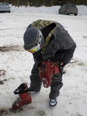 We took a lunch break to get some beer and yummy food before heading back out onto the snow. I took some pretty good falls, bruised my knees when I caught my edge coming off the barrel and a couple falls in the pipe including a good fall in the mini pipe.