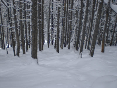 In the trees…it was still fresh powder turns, any way you want and just having to have fun avoiding trees.