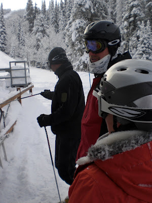 While waiting in line, I see this awesome shredder coming down and cutting to the front in his jacket…and guess who it was! My buddy Steve! He got first turns down Pony while we were all waiting in line for it to open. What a lucky SOB! I was stoked for him and jealous at the same time.