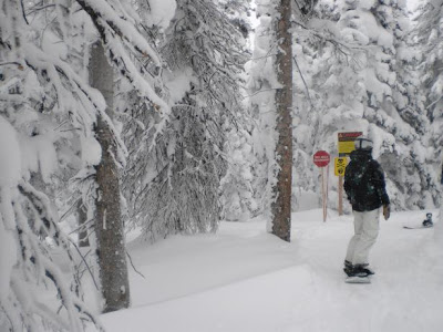 At the top finally met up with Chad, Stacia and Ryan to make some turns. Luckly we didn’t spend much time there before heading down to Pony chair to hit up less lines and more powder runs.