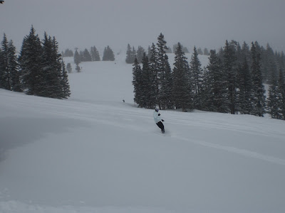 It was snowing this morning at Loveland and windy throughout most of the day. By the afternoon, the sun came out. Conditions were powder turns most of the day, sometimes crust under the powder but for the most part it was really fun to get freshies in late April.