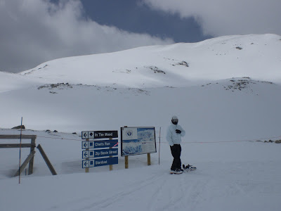 I took this photo which obviously has been enhanced with the exposure to bring out the snow, these were fresh turns I got around 1pm on our run. The snow and sky were not that blue…but I like the photo.