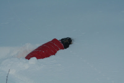 So to make things humorous, here’s a picture of my dog from Christmas.  She’s swimming through the snow near my house.  She’s always wearing her doggie jacket because it keeps her warm.