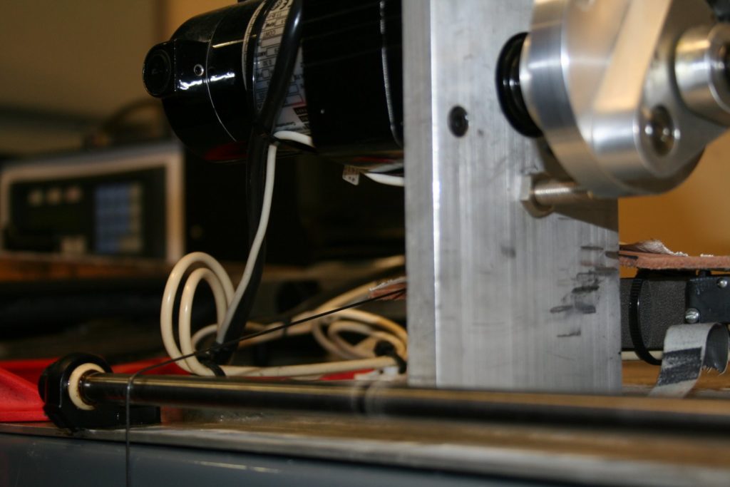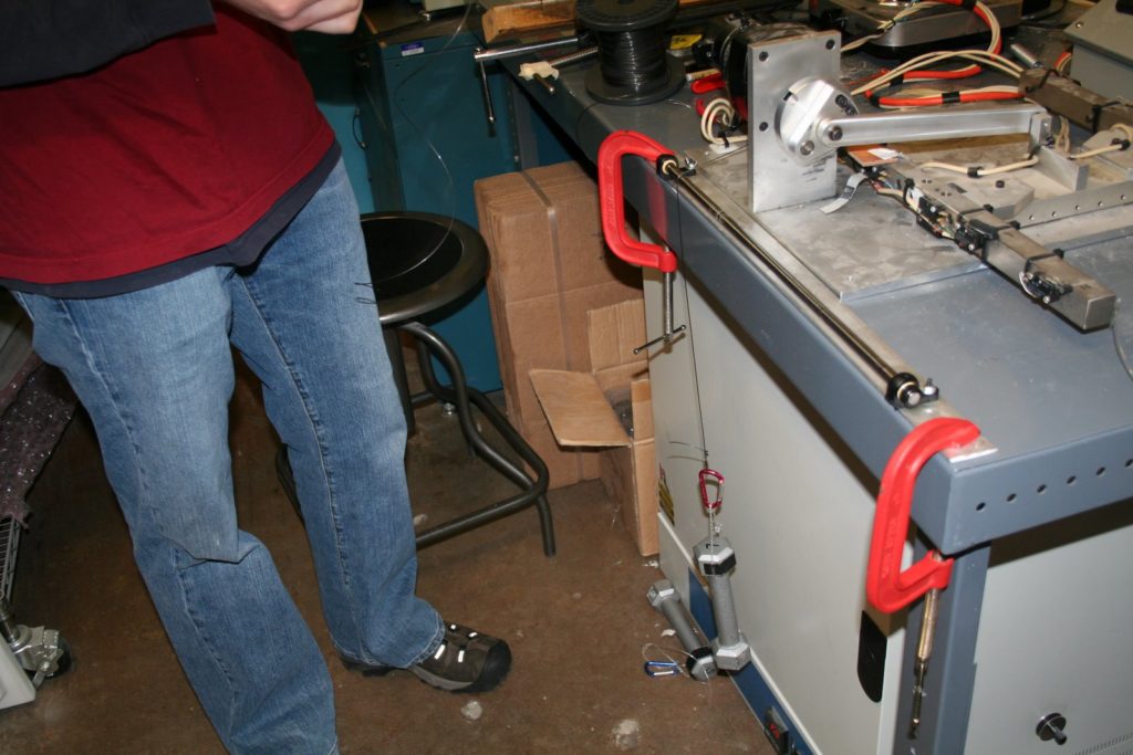 The pull test in action. Each test is tracked and the cable will be left going up and down on the pull test until it breaks. I was told that often they would start it on Friday and come in Monday to it still going.