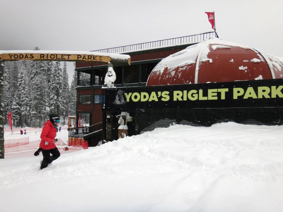 At the end of the day, it was time to check out the new Burton Snowboards Yoda’s Riglet Park at the base of the mountain. Burton and Sierra at Tahoe are offering a truly fun Star Wars experience on the snow complete with characters and a new approach to kids learning progression at a young age. There was a bit too much powder today for the park to be open but we walked around to check out the park anyway.