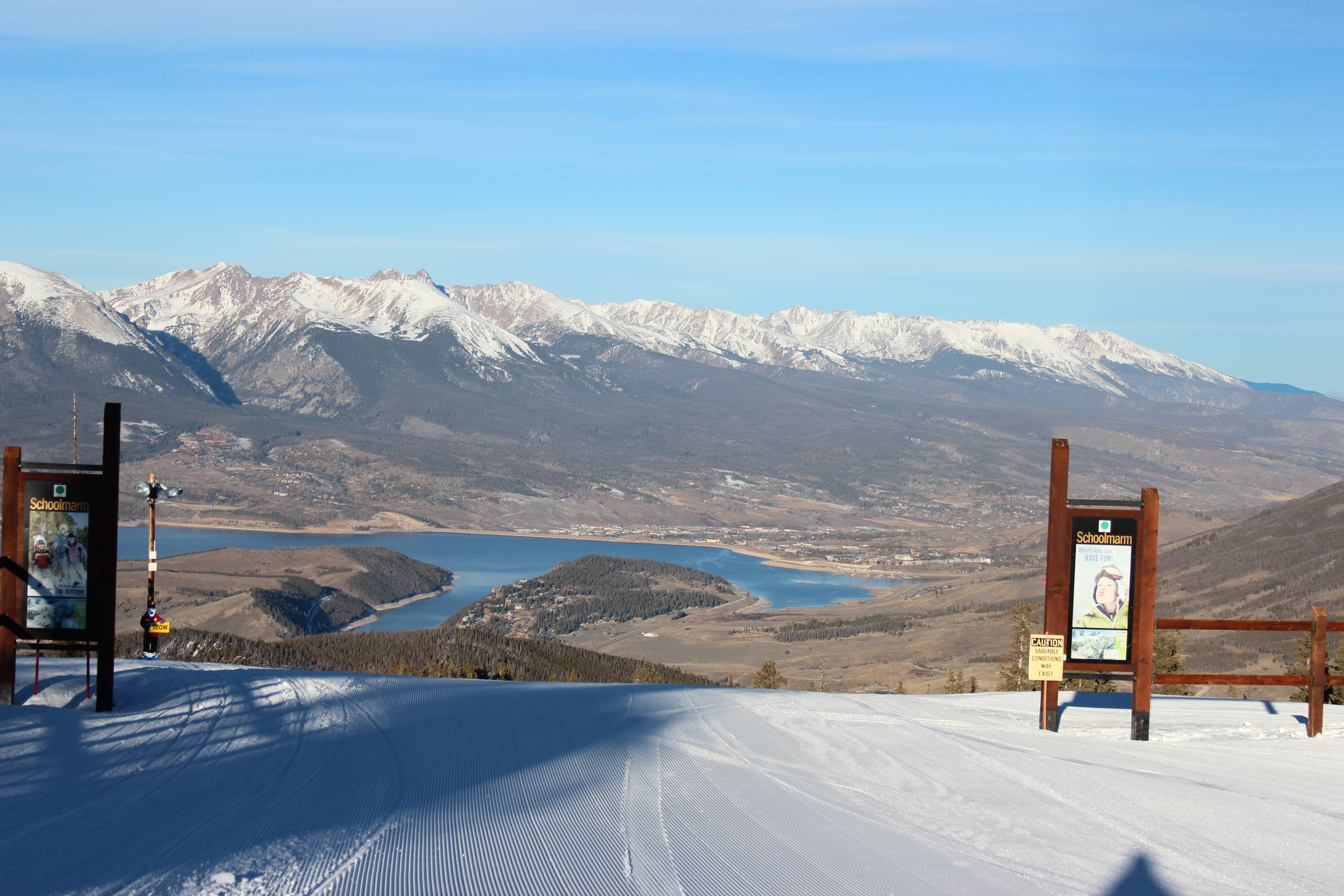 The big perk of early mornings is the corduroy right now. It’s definitely tun to get those first turns in of the day on the best conditions. I rode with my camera so I pointed it behind me and captured this shot of my carves in the snow.