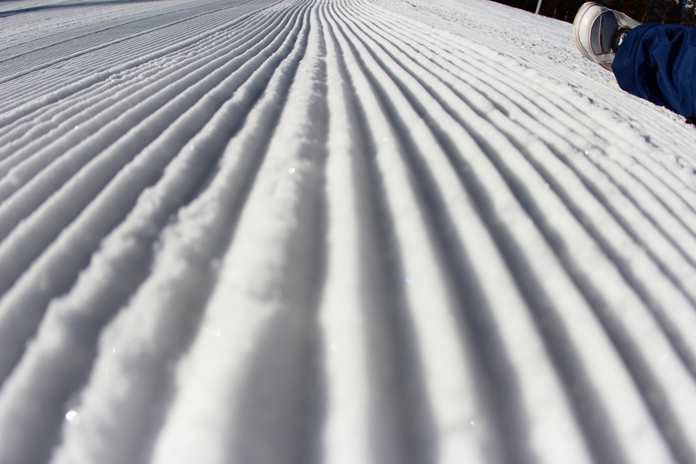 Early mornings on the mountain are worth it. Even if you go out to dinner the night before with the Transworld Snowboarding crew and don’t make it home till midnight. It’s still worth it. Even with groomers. I woke up early on Wednesday to head up to get some shots for social media. No complaints when the sun is shining, snow is on the ground and the groomers did an amazing corduroy grooming job on the mountain.