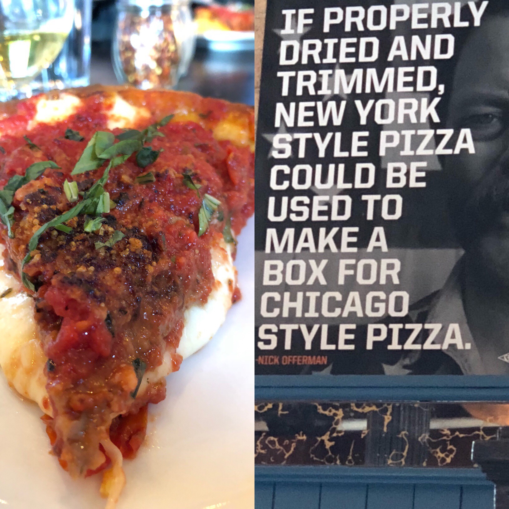 After having visited New York last month and getting NY style pizza, this trip to Chicago was all about Chicago deep dish pizza. We made our way to Gino’s East to enjoy a taste of deep dish heaven. It was glorious. We also appreciated the sign hanging up inside Gino’s.